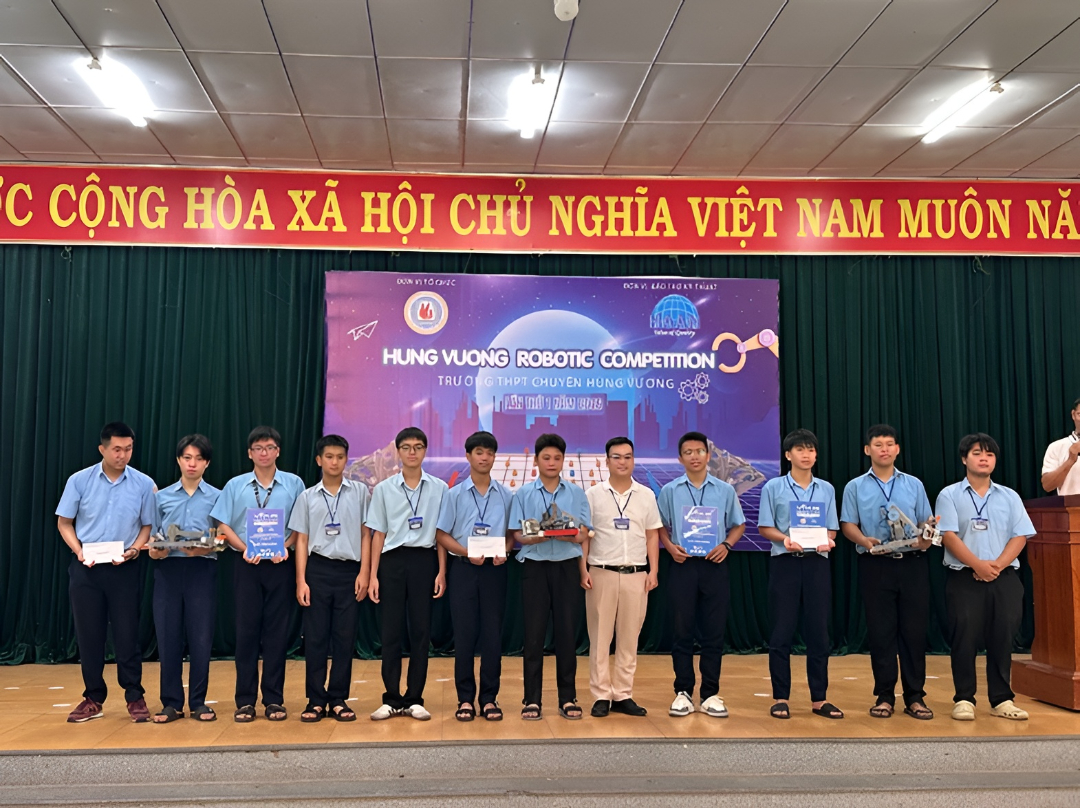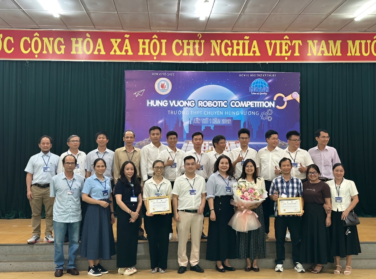 Vào ngày 12/4/2026, Trường THPT Chuyên Hùng Vương Gia Lai đã tổ chức thành công giải đấu Hùng Vương Robotic Competition 2026. Đây là lần đầu tiên nhà trường tổ chức giải đấu VEX IQ cấp trường được triển khai bài bản, định hướng quy mô và tiêu chuẩn theo các giải đấu chính thức, tạo nên một sân chơi công nghệ đầy sáng tạo và kịch tính dành cho học sinh đam mê robotics, đồng thời tận dụng hiệu quả hệ thống phòng học STEM tại nhà trường.